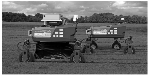 Область применения: работа на экспериментальных участках кукурузы и пшеницы в Германии. Функция: автономные полевые роботы, способные перемещаться в любом направлении, предназначены для работы в «командах». Тестирование: универсальный легкий робот для прополки, удобрения.
