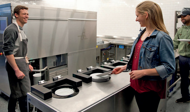 Автоматическая мойка посуды, которую предлагает Dishcraft, функционирует с такой скоростью, что может сократить издержки не только на ручной труд, но и количество посудомоечных машин более чем вдвое.