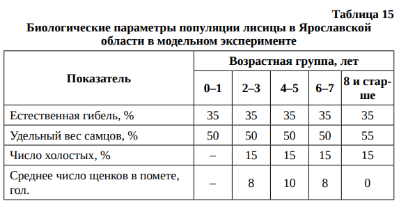 Процент добычи, заложенный в модель с учетом структуры возрастных групп популяции лисицы, составляет:
