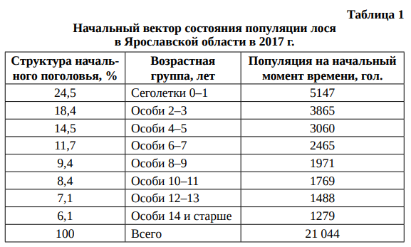 Рассмотрим верификацию и настройку модели на примере популяции лося в Ярославской области (табл. 1–4).