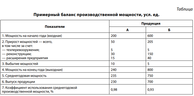 Итоги расчетов по определению производственных мощностей отражаются в балансе производственной мощности.