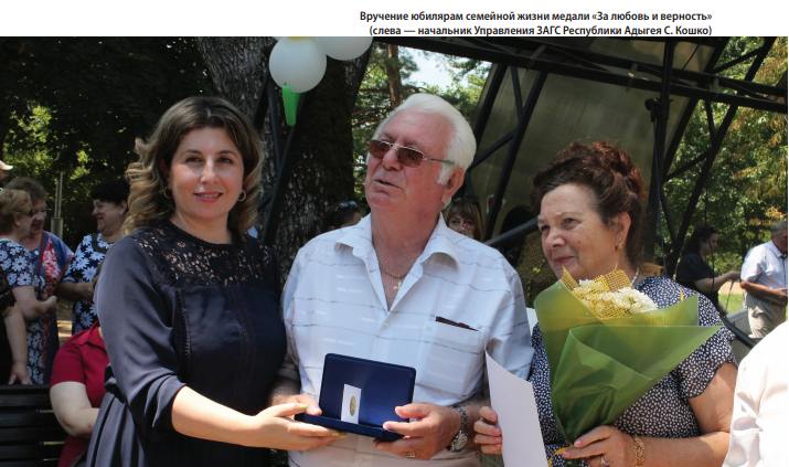 1-й ведущий: Награждение проводит начальник Управления ЗАГС Республики Адыгея Саида Заурбечевна Кошко.