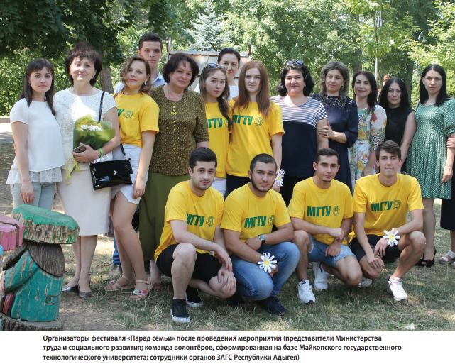 1-й ведущий: Фестиваль «Парад семьи» организован при поддержке Министерства труда и социального развития Республики Адыгея, Управления культуры города Майкопа, Управления ЗАГС Республики Адыгея и регионального отделения «Общероссийского народного фронта».