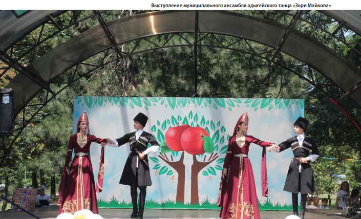 2-й ведущий: Своё выступление вам дарят солисты муниципального ансамбля адыгского танца «Зори Майкопа».