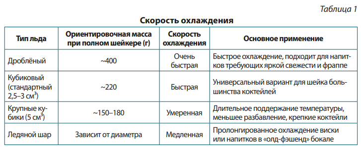 Примечание: значения массы являются приблизительными, в реальных условиях возможны колебания в зависимости от влажности и формы льда. Размер шейкера также играет важную роль: чем вместительнее шейкер, тем больше льда можно использовать, что влияет на эффективность охлаждения и разбавления.