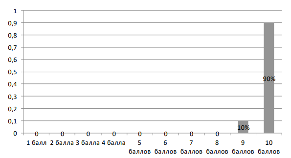 Таким образом, согласно проведенному анкетированию, 90 % пациентов оценивают роль медицинской сестры в профилактике постинъекционных осложнений на 10 баллов (из 10), 10 % пациентов поставили оценку 9 баллов. Данные показатели означают, что медицинские сестры являются главными источниками информации о профилактике и предотвращении постинъекционных осложнений и специалистами, которые должны соблюдать требования к профилактике постинъекционных осложнений (рис. 6).