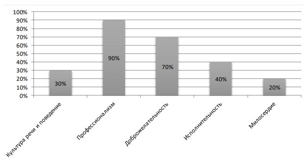 Отвечая на вопрос о том, что является важным в работе медицинской сестры, респонденты выделили следующие качества (рис. 4):