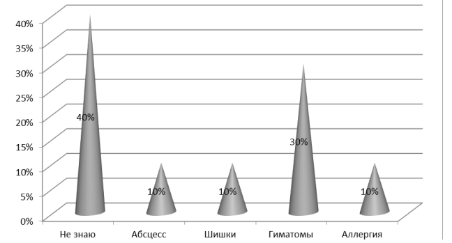— 30 % респондентов назвали гематому, абсцесс, «шишки», аллергию.