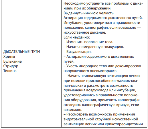 • Сбор информации SAMPLE (Symptoms… симптомы, Allergies… аллергические реакции, Medications… Медикаменты, Past Medical History… Перенесенные заболевания, Last Oral Intake… последний прием пищи и жидкости, Events Leading Up To Present Illness / Injury… События, которые привели к возникновению этого заболевания или повреждения), если она не была получена.