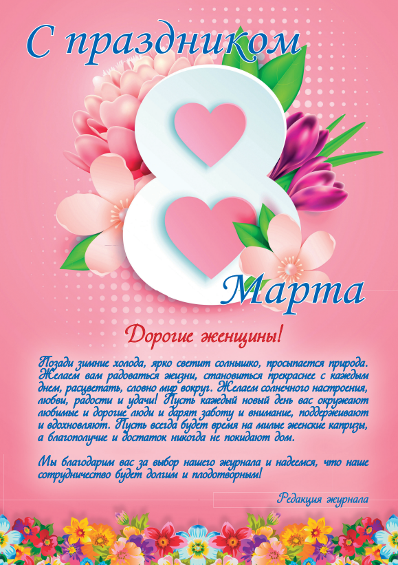 Статья "С праздником 8 Марта!" Журнал "Охрана труда и техника безопасности в сельском хозяйстве / Охрана труда и техника безопасности в сельском хозяйстве"