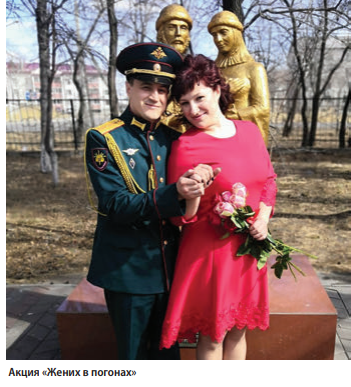 Другая акция — «Жених в погонах» — вызвала в этом году не меньший интерес у амурчан. Она была приурочена к 74-й годовщине Победы в Великой Отечественной войне. При этом поучаствовать в ней было предложено не только действующим военным, но и тем, кто когда-то служил в армии или любой другой структуре, подразумевающей ношение формы.