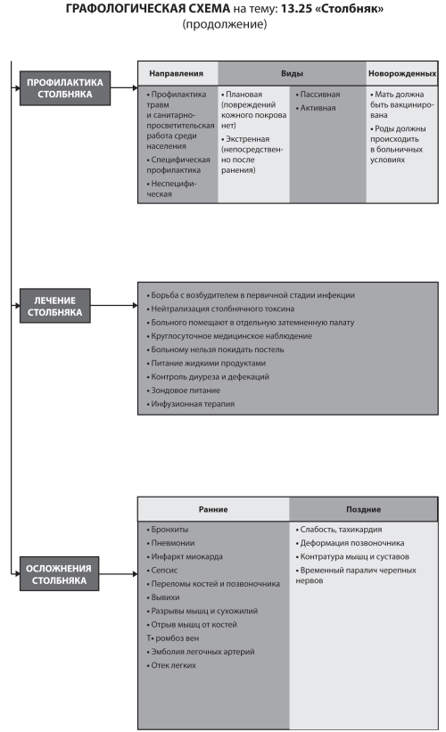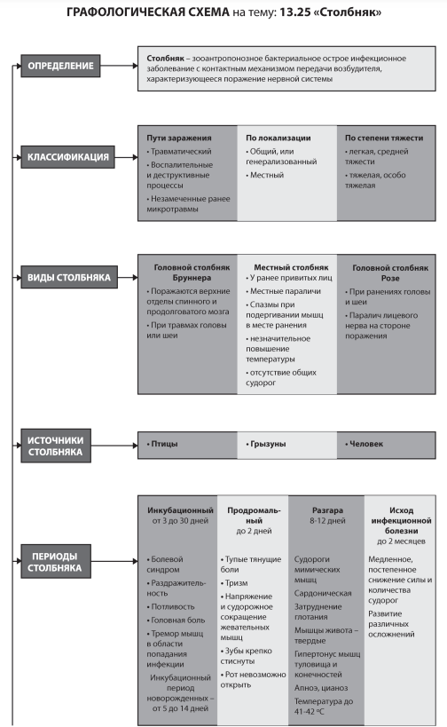 3. Содержание темы, включающее определение понятия «столбняк», классификации стадии течения, клинику, диагностику, профилактику и принципы лечения столбняка, а также схемы, задания, эталоны ответов и другое необходимое для раскрытия темы.