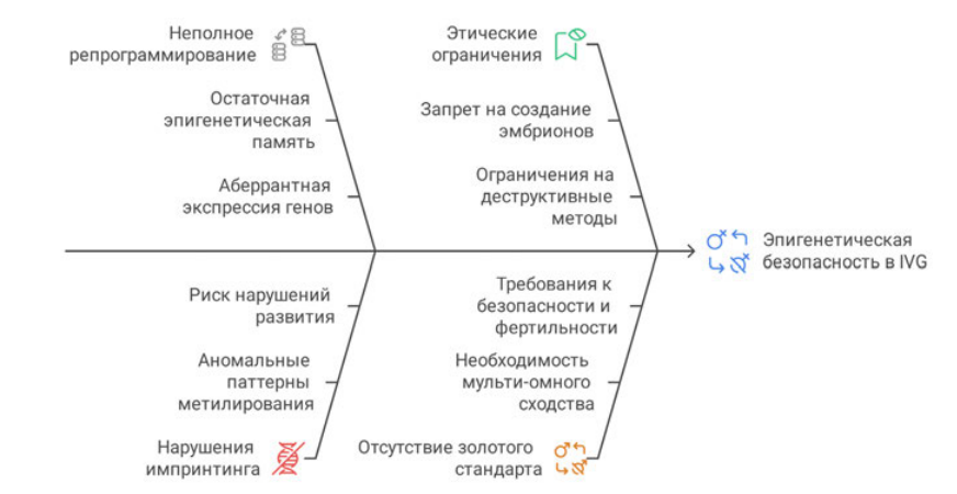 Рис. 2. Основные барьеры эпигенетической безопасности в IVG. Fig. 2. Key barriers to epigenetic safety in IVG