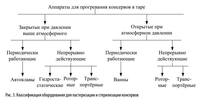 Существуют непрерывно работающие и периодически действующие аппараты для стерилизации пищевых продуктов (рис. 3) [7].
