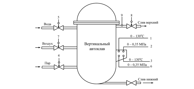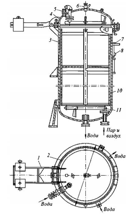Таким образом, наиболее подходящим агрегатом для стерилизации на небольшом предприятии большой номенклатуры продукции является вертикальный автоклав периодического принципа действия.