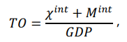 Для анализа динамики взаимной торговли использовался показатель взаимной открытости экономики, который представляет собой отношение объема взаимной торговли товарами к ВВП:
