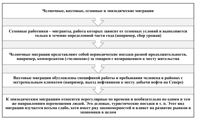 3. Сезонная миграция, являющаяся самым распространенным видом, который связан с сезонным характером различных видов занятости (сельское хозяйство, рыбная ловля, строительство, сфера услуг).