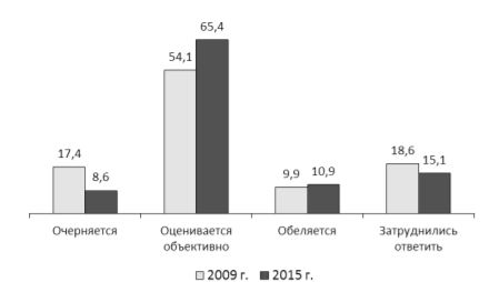 Рис. 4. Мнения респондентов относительно искажения истории войны 1941–1945 годов в некоторых публикациях в печати, передачах телевидения и радио (в %)