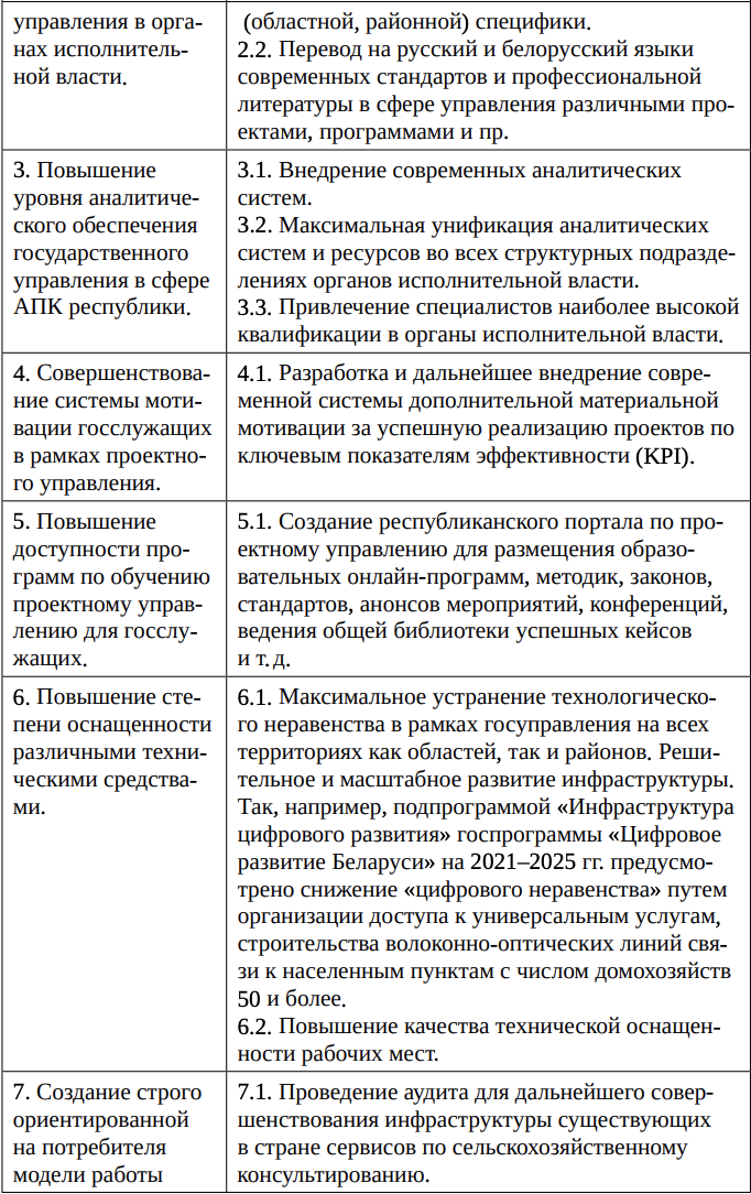 Управление и цифровое развитие АПК Республики Беларусь. Повышение качества государственного управления в АПК Беларуси сегодня базируется и на совершенствовании механизмов государственной политики и затрагивает внедрение механизмов проектного управления. Проектное управление – метод управления масштабными задачами в условиях временных и ресурсных ограничений для достижения заявленных результатов и поставленных целей, процесс оказания госуслуг и снижение административных барьеров, бюджетная и налоговая политика, взаимодействие с органами местного самоуправления.