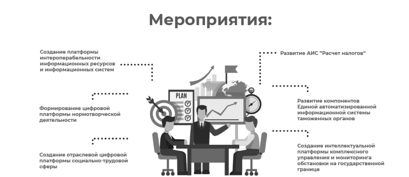 Рис. Мероприятия, предусмотренные подпрограммой «Цифровое развитие государственного управления» госпрограммы «Цифровое развитие Беларуси», на 2021–2025 гг.