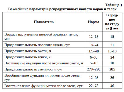 Половая зрелость у крупного рогатого скота разных пород наступает в зависимости от скороспелости, условий кормления, ухода и содержания животных. Целью работы специалистов по воспроизводству крупного рогатого скота молочного направления продуктивности является достижение следующих важнейших показателей: