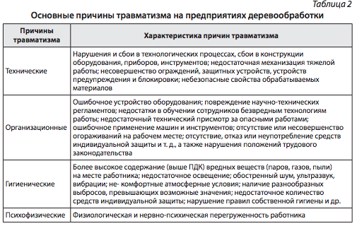 В то же время данная отрасль промышленности является травмоопасным производством (табл. 2).