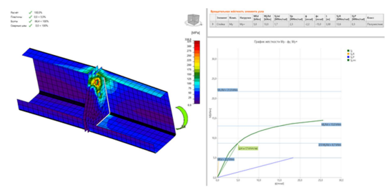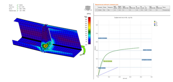 Рис. 3. Определение вращательной жесткости узла по направлению Му+