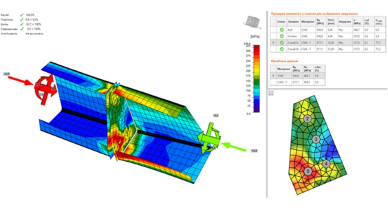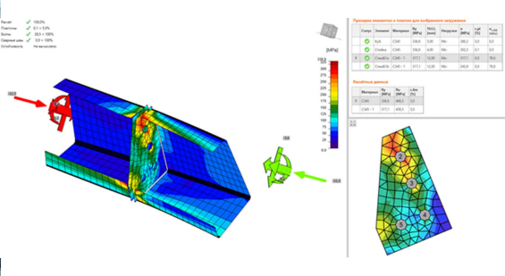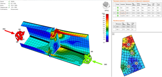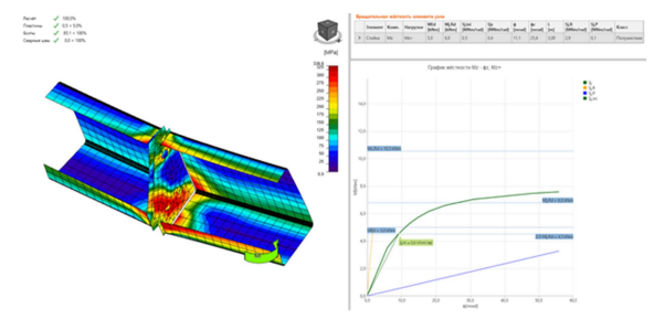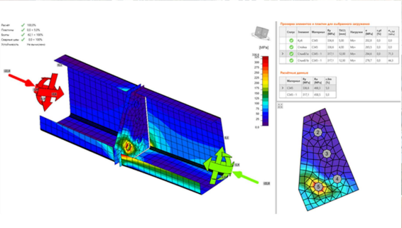 Статический расчет узла выполнен в программе IDEA StatiCa 21.1 в нелинейной постановке.