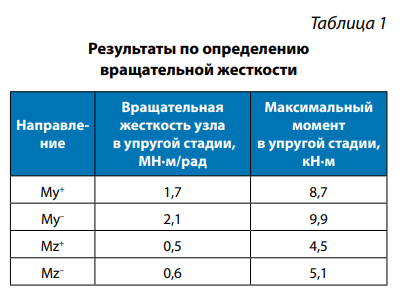 Результаты по определению вращательной жесткости узла сведены в табл. 1.
