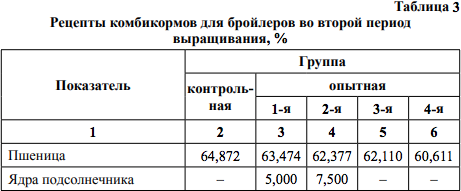 Цель исследований состояла в оценке влияния включения в комбикорма ядер и семян подсолнечника на продуктивность цыплят-бройлеров.