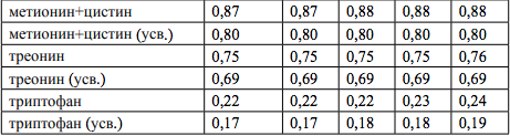 Питательность 100 г комбикормов контрольной и опытных групп по содержанию сырого протеина, сырого жира, сырой клетчатки и линолевой кислоты несколько отличалась, а содержание минеральных веществ и аминокислот было одинаковым.
