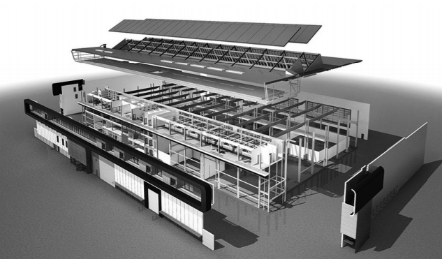 Проектирование по технологии BIM (Building Information Modeling — информационное моделирование строительства зданий) позволяет создать полное информационное описание строящегося объекта. Технологию, которая фактически завершается созданием интегрированной проектной модели и, на ее основе, пакета рабочих чертежей, можно сравнить с автомобильным конвейером.